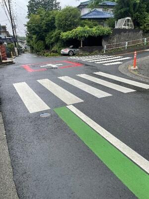 ↑画像はここ2年ほどで修繕していただいた場所です。児童の安全を守る「学童注意」などの表示も。市の対応に感謝いたします。