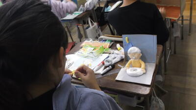 4年生は図工で紙ねんどを使って、「本を開くと お気に入りの場面」に取り組んでいました。
