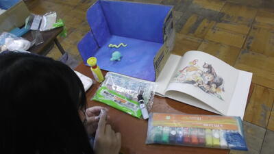 図書室から借りたお気に入りの本のお気に入りの場面を、紙ねんどで丁寧につくっていました。