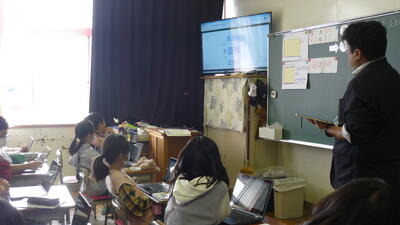 昨日に引き続き、今日は所沢市内の小学校中学校のICTを使った授業を研究する先生たちが、4年1組の研究授業の参観にいらっしゃいました。