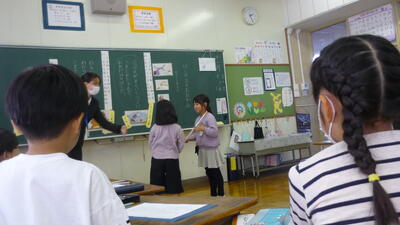 子どもたちは、おおかみになりきって授業を受けました。ちいさなおおかみさんたちが、気持ちを考えて伝えあったり、ワークシートに書いたり、さらには劇をしてみたり。