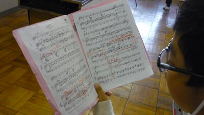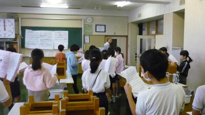 今朝は、4年生がリーダーを中心にパート練習をする様子がありました。
