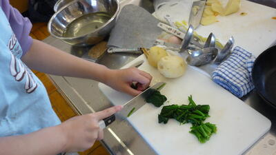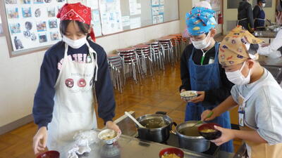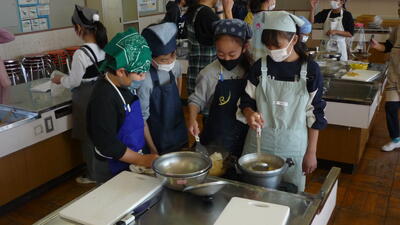 5年生は「ごはんとみそしる」、6年生は「ジャーマンポテトとナムル」をそれぞれ作りました。