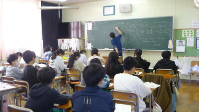 6年生は縮図を用いて、実際の距離を求める授業を。