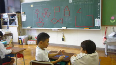 1年生は、数え棒を使っていろいろなかたちをつくっていました。