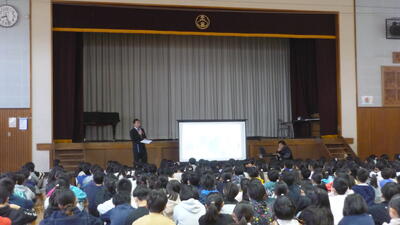 校長先生からは、今週の木曜日から始まる「人権週間」についてのお話がありました。「人権」とは少し難しい言葉ですが、「だれもが幸せに生きるために、最も大切にしなければいけないものは『命』である」というメッセージが、子どもたちに伝えられました。