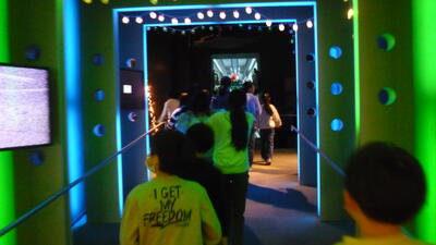 また、特殊撮影技術を使った「空飛ぶじゅうたん」の体験もでき、その不思議な映像に歓声が上がりました。他にも情報メディアに関する様々な展示や体験を通して、メディアの役割や仕組みを楽しく学ぶことができました。