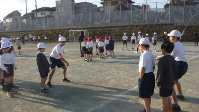 低学年は、体育委員の高学年児童がやさしくなわを回していました。
