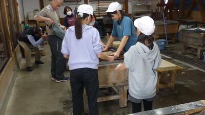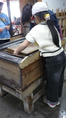 2つ目の目的地は、東秩父村の和紙の里です。世界遺産にもなっている和紙を子供たちが一人一枚作りました。後日完成したオリジナルの和紙が学校に届きます。今から楽しみです。