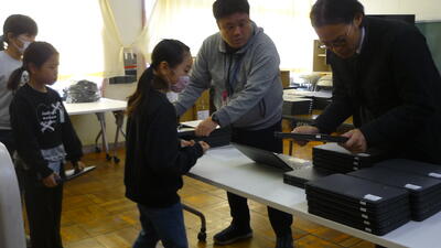 4年生と5年生の児童が、今まで使っていたクロームブックを返却し、新しいクロームブックと交換しました。