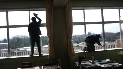 普段の清掃ではなかなか手が回らない特別教室や、窓、隅々まで、黙々と手を動かす姿が印象的でした。自分たちの学び舎を一生懸命に磨き上げる姿からは、最高学年としての誇りと学校への愛着が感じられました。