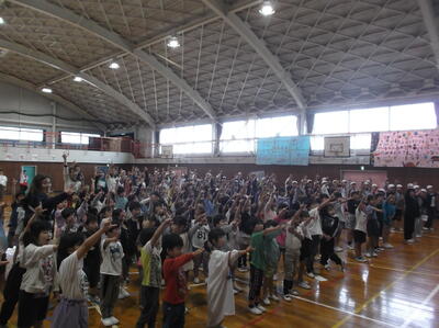 朝の出発式では、体育館に元気な応援歌が響き渡り、学校全体が熱気に包まれました。