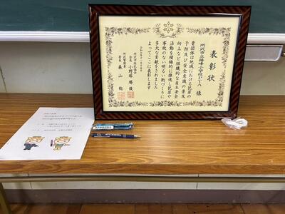 この防犯表彰はPTAで1校のみという、大変誇らしいものです。