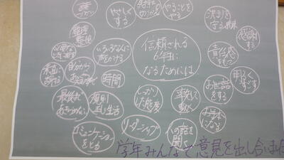 一人一人のワークシートには、最高学年としての決意が枠いっぱいにぎっしりと書き込まれており、