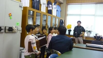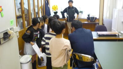 校長室を訪れたグループは、校長先生に「どんなお仕事をしているんですか?」「これは何ですか?」など、興味津々で質問をしていました。